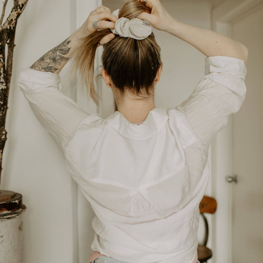 Original – perfect for those with thick or long hair (or a combination of the two!) or for those who like a full and plush overall scrunchie aesthetic.